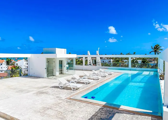 El Studios And Suites Ducassi Rooftop Pool Hotel - Beach Club & Spa Punta Cana, que dispone de unas piscinas exteriores, está situado en el distrito El Cortecito, a 6 km del Parque Acuático Splash. Los huéspedes pueden disfrutar de excursiones a caballo que se organizan en este hotel de 5 estrellas.